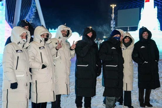 (与会嘉宾身穿波司登极寒系列羽绒服探索冰雪大世界)