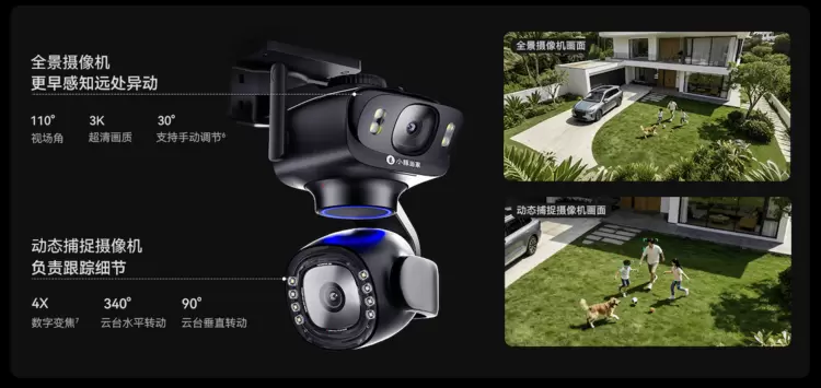 传统的监控摄像头就像是一台只能记录的录音机,永远只能在事件发生后被动回溯。而鲸瞳 Max 则具备了主动感知与响应的防御逻辑,它不仅是在看,更是在守。这得益于其独特的双摄联防架构,全景摄像机就像雷达系统的全局扫描,支持手动向下 30度的伸缩,打破了安装高度的视野限制,负责更大范围的全局感知:而一旦检测到远处有异动,它会立刻联动动态捕捉摄像机进行追踪,真正实现一台顶多台的覆盖能力,如同精密仪器锁定目标一样精准。